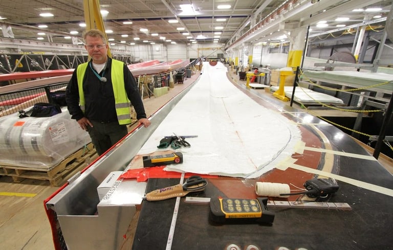 Nach zahlreichen internen Prozessen unterliegen die Formen Verformungen, daher ist es wichtig, sie regelmäßig zu überprüfen. Besonders die Formen für Windkraftanlagen unterliegen aufgrund der großen Abrollfläche großen Verformungen. Das 3D-Scannen ermöglicht eine schnelle und genaue Überprüfung von Abweichungen und Verformungen in Bezug auf die Generiermathematik, mit der die Form hergestellt wurde.